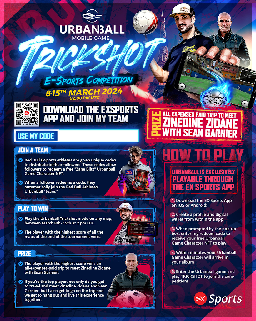 The winner of this Urbanball mobile game competition will be whisked away on an all-expenses-paid trip to France to meet the legendary Zinedine Zidane alongside Sean Garnier himself! This incredible opportunity awaits the player who reigns supreme in the Urbanball Trickshot mode.